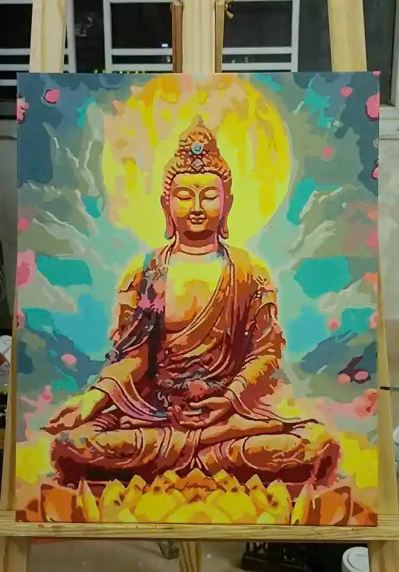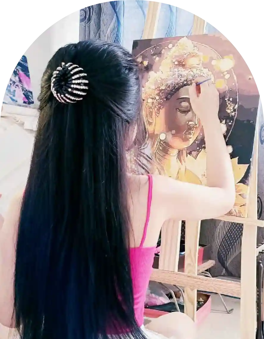 I am a Vietnamese calligrapher and contemporary painter, an artist whose works revolve around Buddha, enlightened beings, and spiritual themes. As a meditation practitioner and follower of Buddhism, I honor all religions and regards art as a path of spiritual cultivation. My artistic style harmoniously blends traditional Eastern aesthetics with modern expression, where letters, colors, and the spirit unite in a meditative space filled with serenity and inner light.